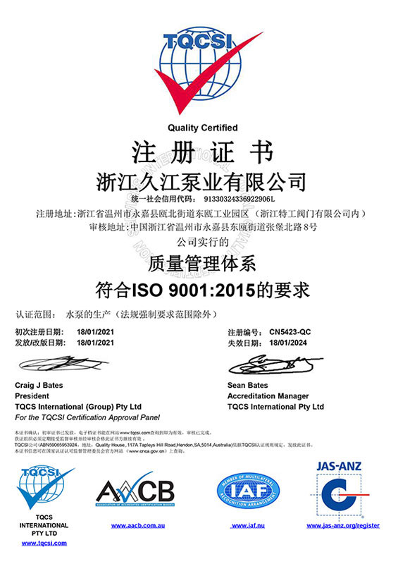 浙江久江泵業有限公司是專業從事自吸泵,柴油機泵,管道泵,排污泵,隔膜泵,螺桿泵,多級泵,智慧泵房等各類水泵及附屬產品生產和銷售的企業,公司落座于具有“泵閥之鄉”美稱的溫州甌北,與市區隔江相望,甬臺溫、金麗溫高速貫穿市中心;到火車站僅需20分鐘車程,至機場不到1小時,交通十分便利,資訊發達。企業自成立以來,充分的利用區域性專業集群優勢,大力開發科技創新。多年來公司積國內水泵優秀企業的技術、人才、管理等資源優勢,進行有效合理的整合,并輔以現代企業管理模式、科學高效的公司管理體制制度,通過近幾年的快速發展,依靠雄厚的科技實力和扎實的管理基礎,通過ISO9001-2000國際標準質量體認證。久江人通過“專注科技成就恒久品牌、專業技術造就長久品質、專心服務創造永久口碑"的宗旨,堅持誠信經營,在強手如林的泵閥行業占據了一席之地。